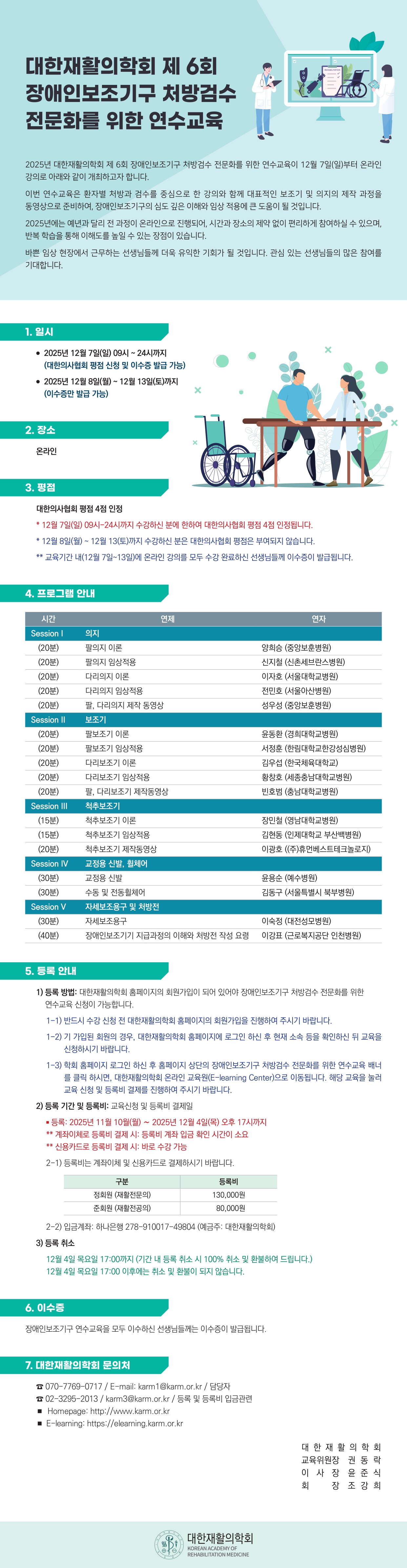 | 대한재활의학회 제 6회 장애인보조기구 처방검수 전문화를 위한 연수교육 | |||||