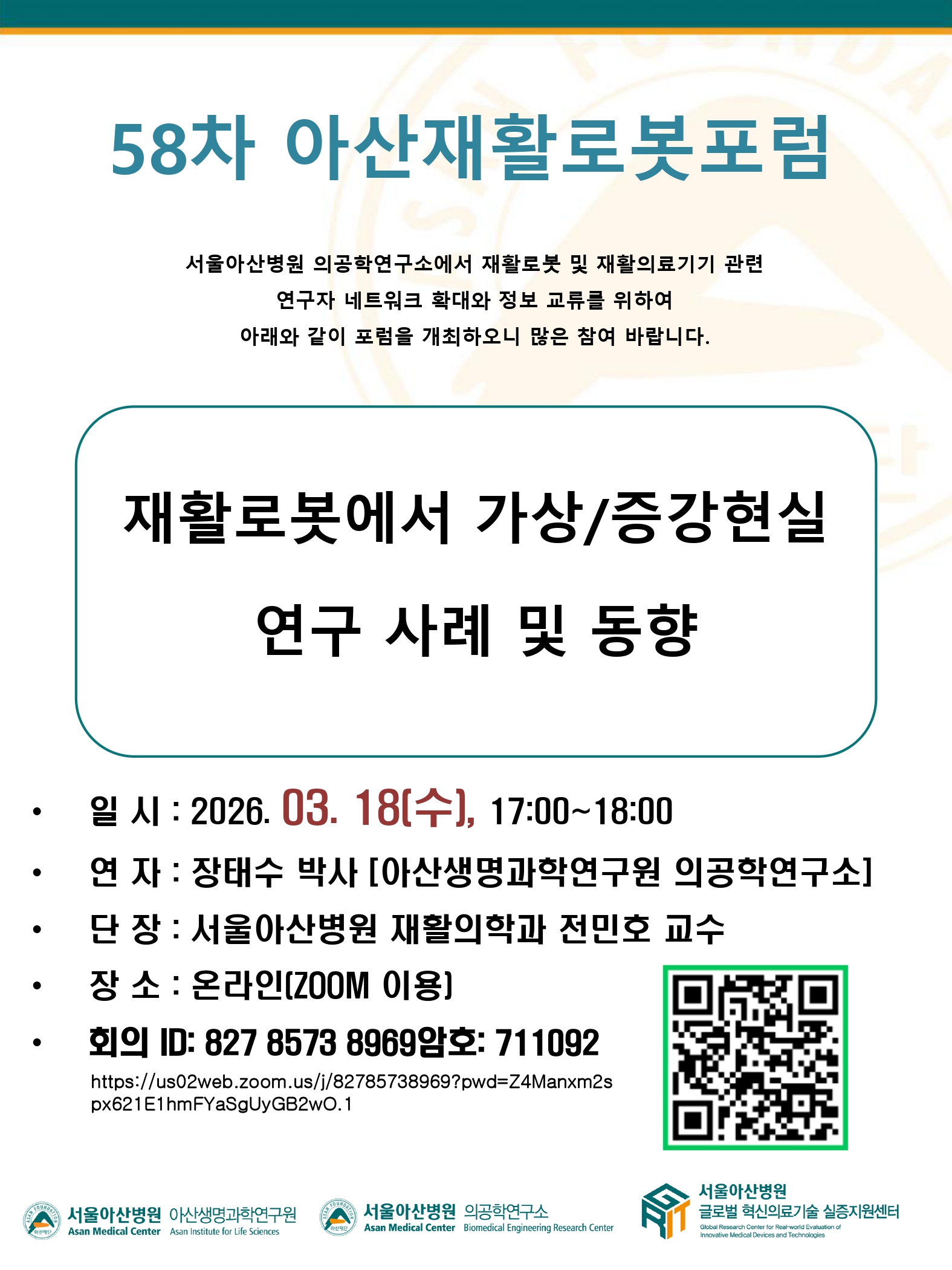 | 제58차 서울아산병원 아산재활로봇포럼 | |||||